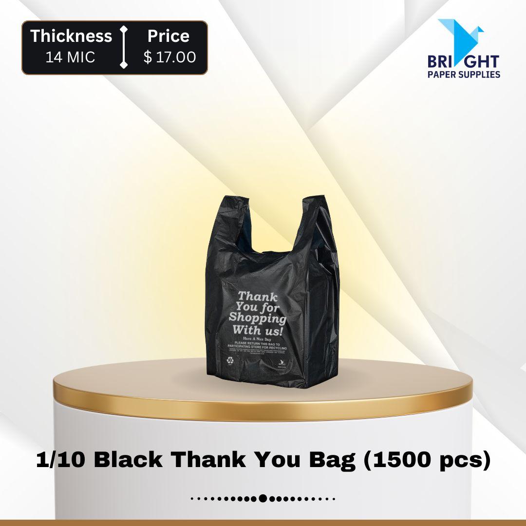 Elevate your packaging with our 1/10 Black Thank You Bags, designed for everyday efficiency with a premium look. These bags are lightweight yet durable, featuring a standout red “Thank You” message on sleek black plastic—ideal for retail, takeout, and convenience use.
